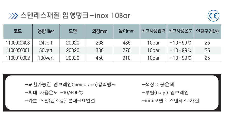 | Inox-pro Itr.100hor | 100 | 450 | 910 | 10bar | 25 | sts304 |