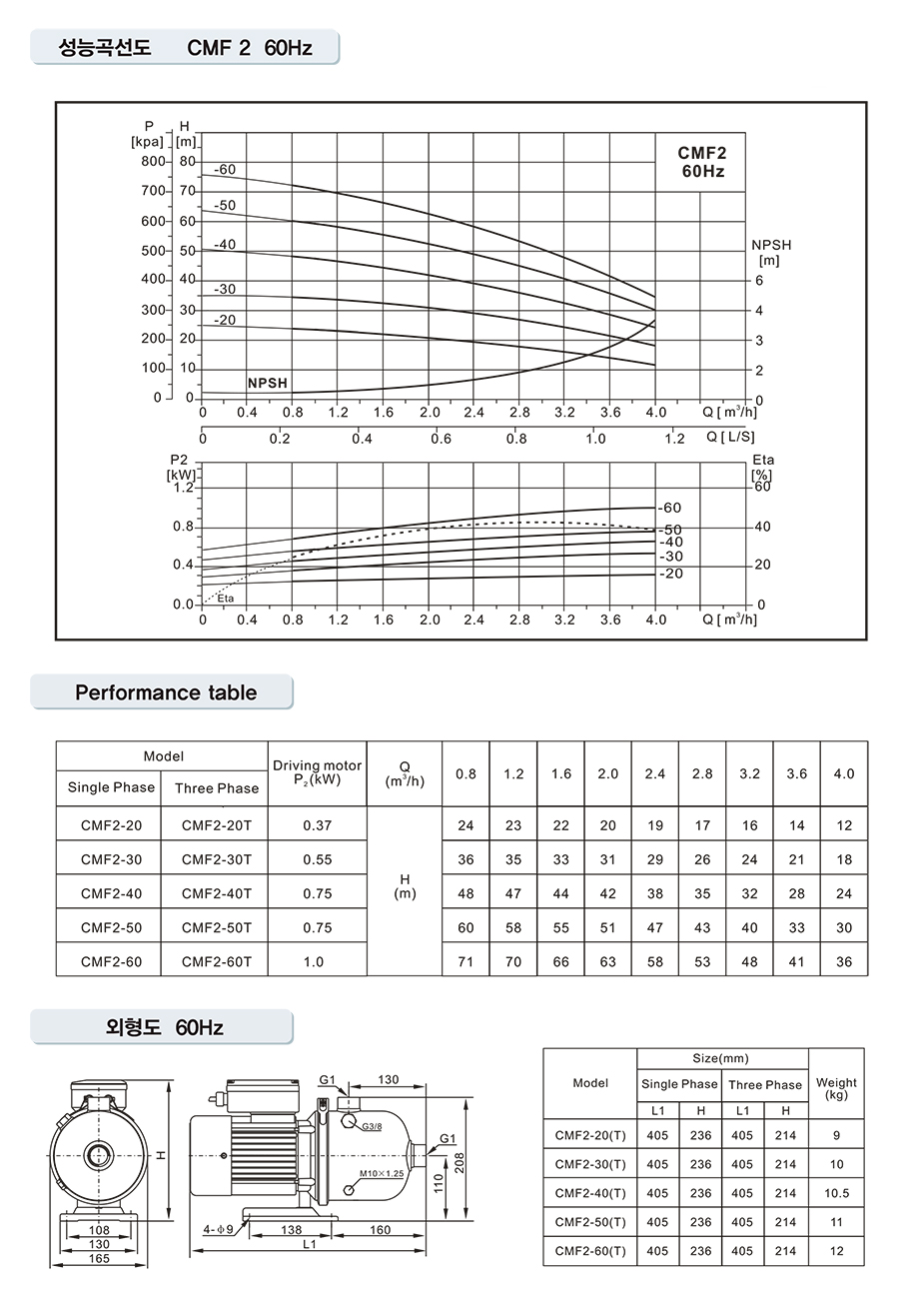| ¸ðµ¨ | ÃÖ°íÀ¯·® (l/min) | ÃÖ°í¾çÁ¤ (m) | ´Ü»ó | Ãú·Â(P2) | SIZE(mm) | |||
