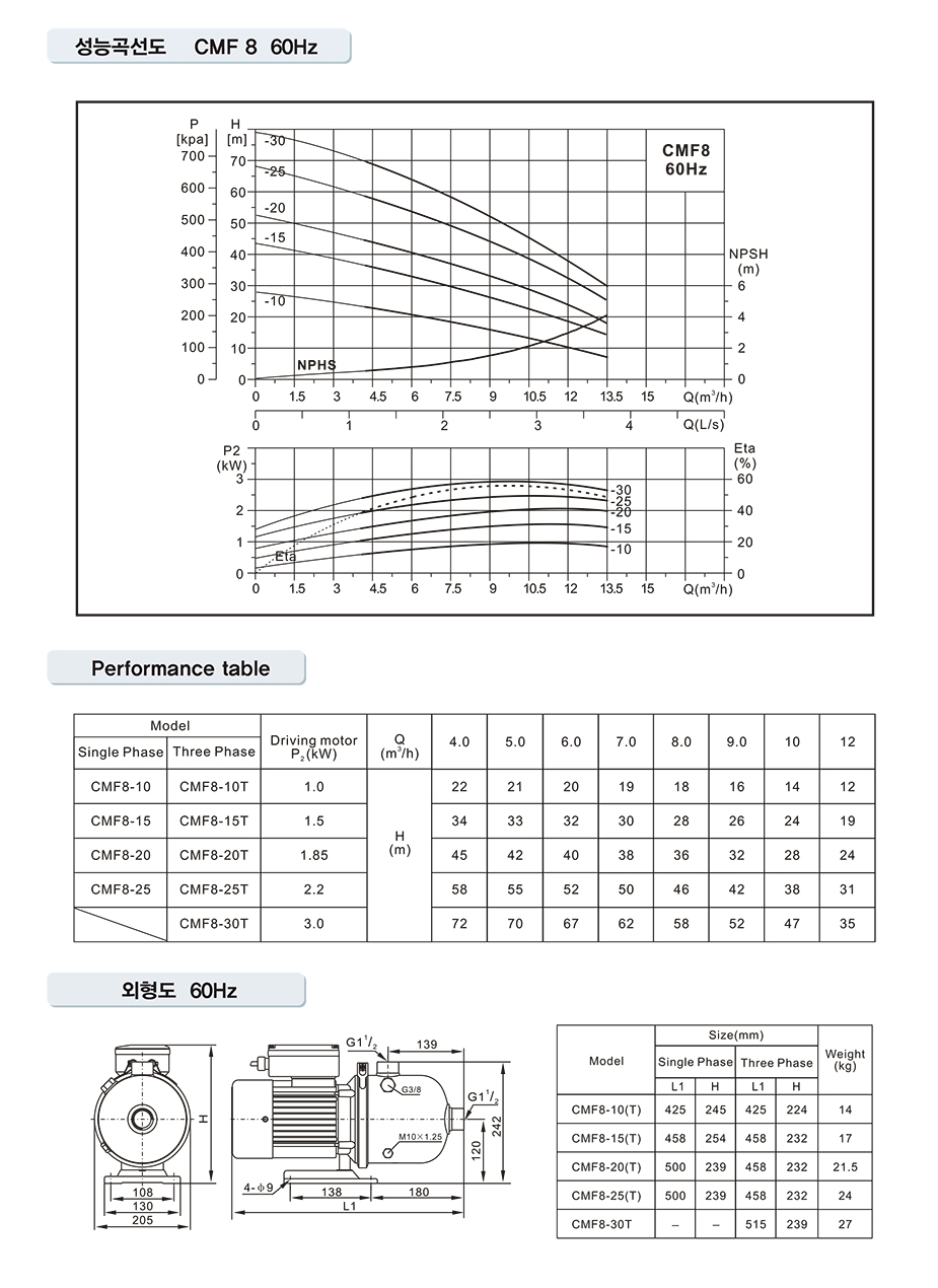 | KW | HP | (LPM) | (m) | (m) | ±¸°æ(mm) | |