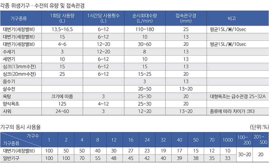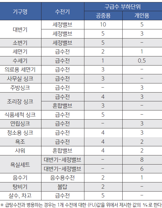 ±â±¸ÀÇ Á¾·ùº°·Î(¼³Ä¡´ë¼ö x 1ȸ´ç ±Þ¼ö»ç¿ë·® x 1½Ã°£´ç »ç¿ëȸ¼ö)¸¦ °è»êÇÏ°í ¼³Ä¡ ±â±¸¼ö¿Í °Ç¹°ÀÇ ¿ëµµ¿¡ µû¶ó ÀûÀýÇÑ µ¿½Ã»ç¿ëÀ²